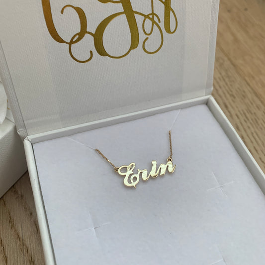 18K Solid Gold Personalised Carrie Style Name Necklace