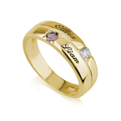 Personalised Three Name Plates and Birthstones Stacker Ring