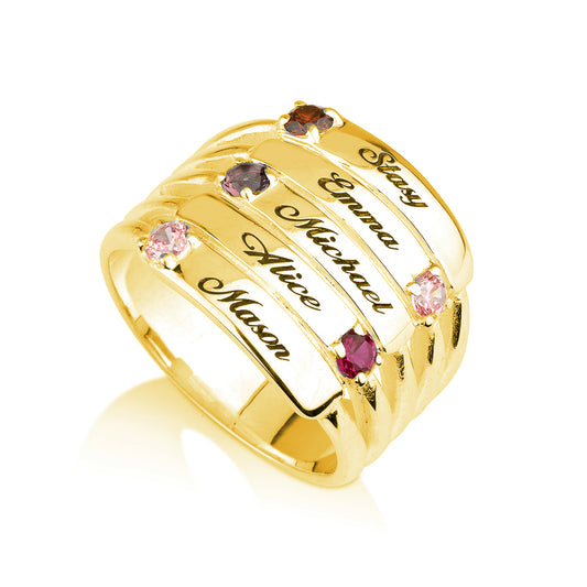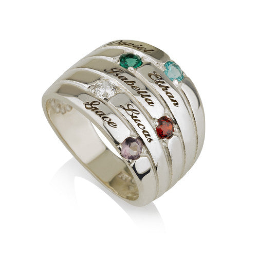 Personalised Five Names and Birthstones Stacker Ring