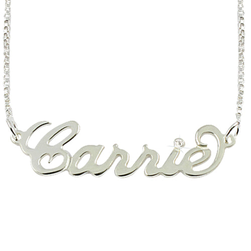 14K Solid Gold Personalised Carrie Style Name Necklace with Swarovski on the i