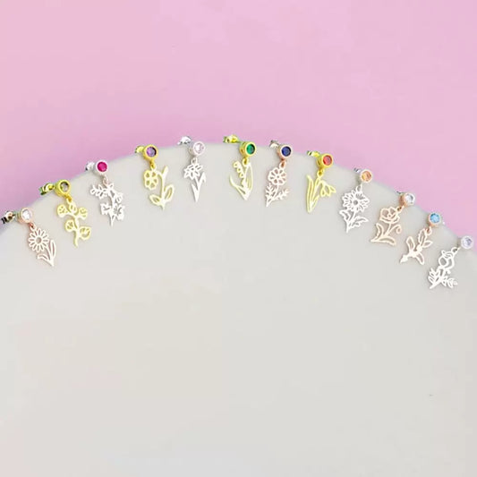 Birth Flower Birthstone Earrings