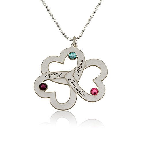 Personalised Circle Birth Flower Name Necklace with Birthstone