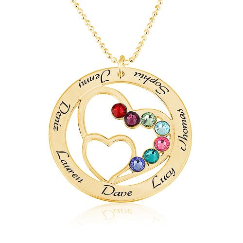 Family Heart Or Circle Birthstones Personalised Necklace- Up to 11 Names
