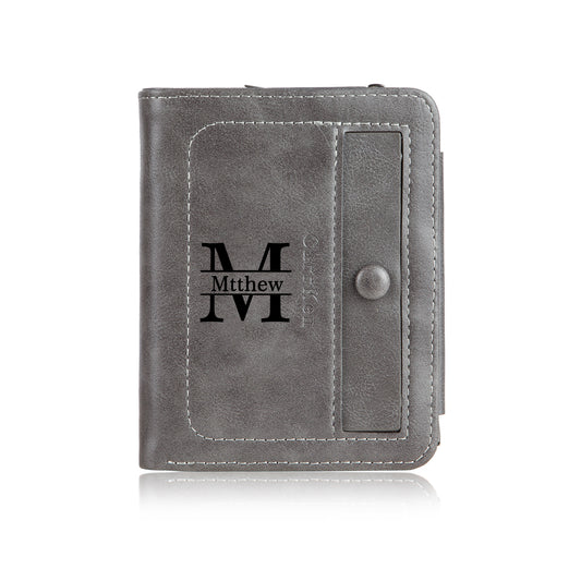 Men's Personalised Initial & Name Grey Photo Engraved Wallet