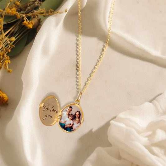 Birth Flower Bouquet Personalised Oval Photo Locket Necklace