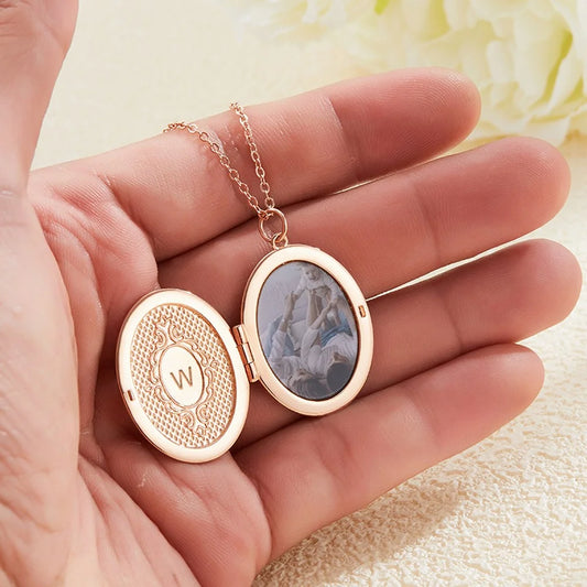 Personalised Birth Flower & Inside Initial Photo Locket Necklace