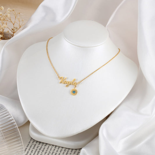 Evil Eye Personalised Name Necklace with Birthstone