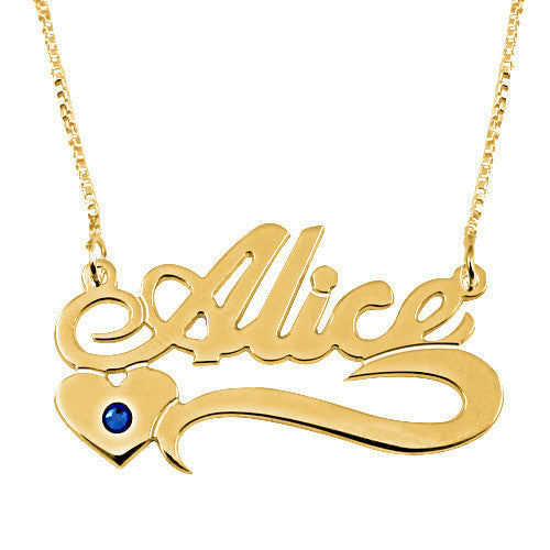 Personalised Name Necklace with Underline Birthstone Heart