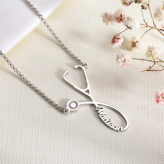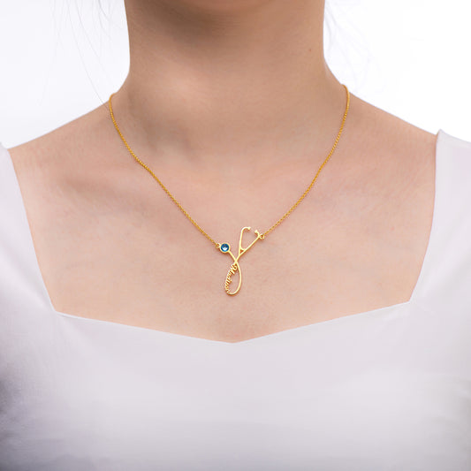 Doctors Stethoscope Personalised Name Necklace with Birthstone