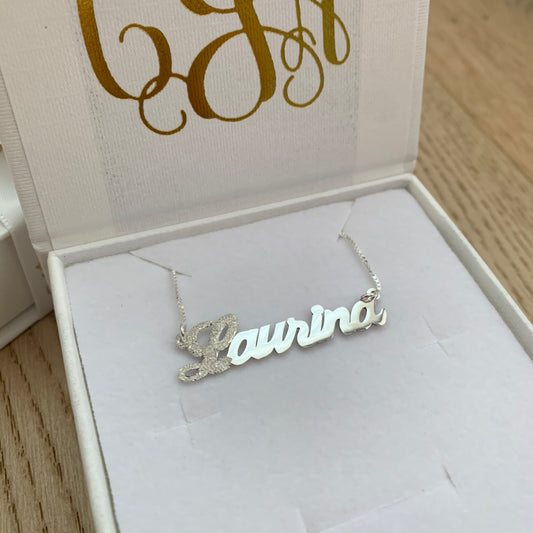 Sterling Silver Personalised 1st Letter Frosted Name Necklace