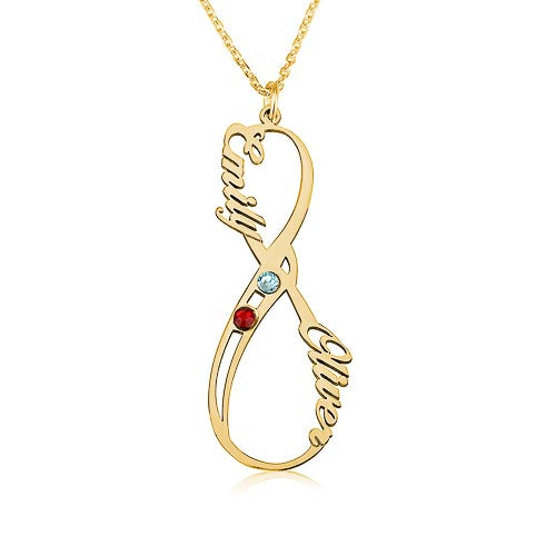 Vertical Infinity Personalised Names & Birthstone Necklace