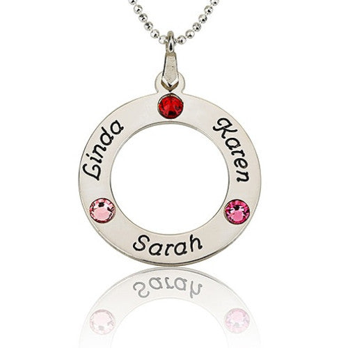 Name & Birthstone Circle Personalised Necklace-4 Names