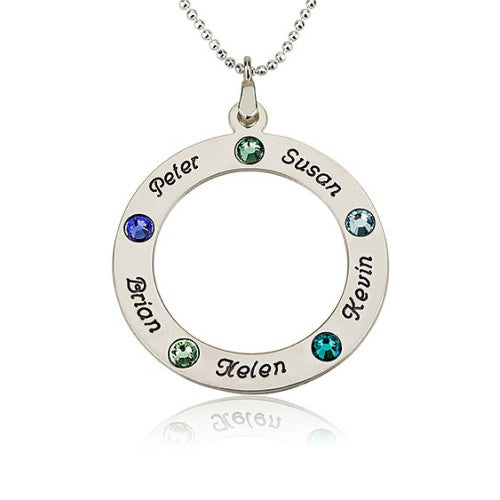 Name & Birthstone Circle Personalised Necklace -5 Names