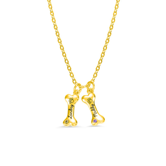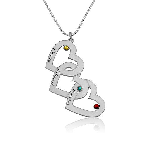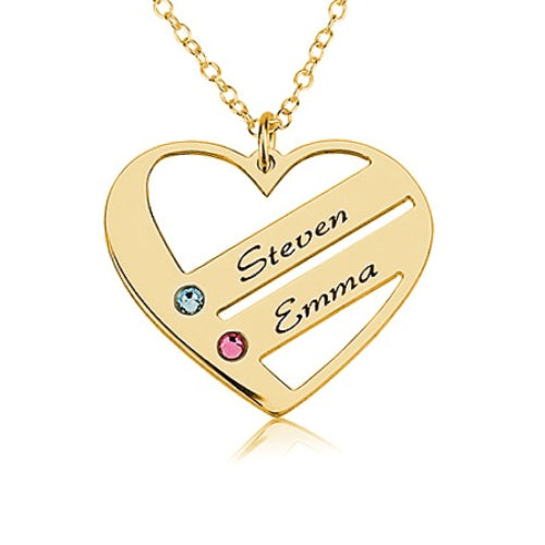 Twin Hearts Couple's Name & Birthstones Personalised Necklace