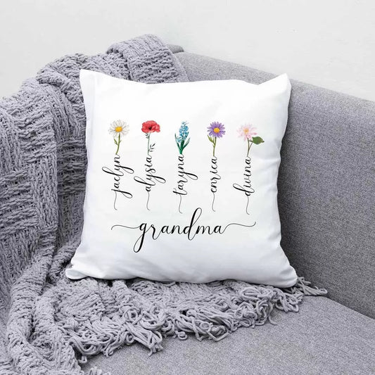 Personalised Names & Birth Flower Pillow Cover Case for Grandmothers/ Mums