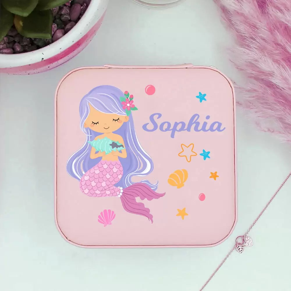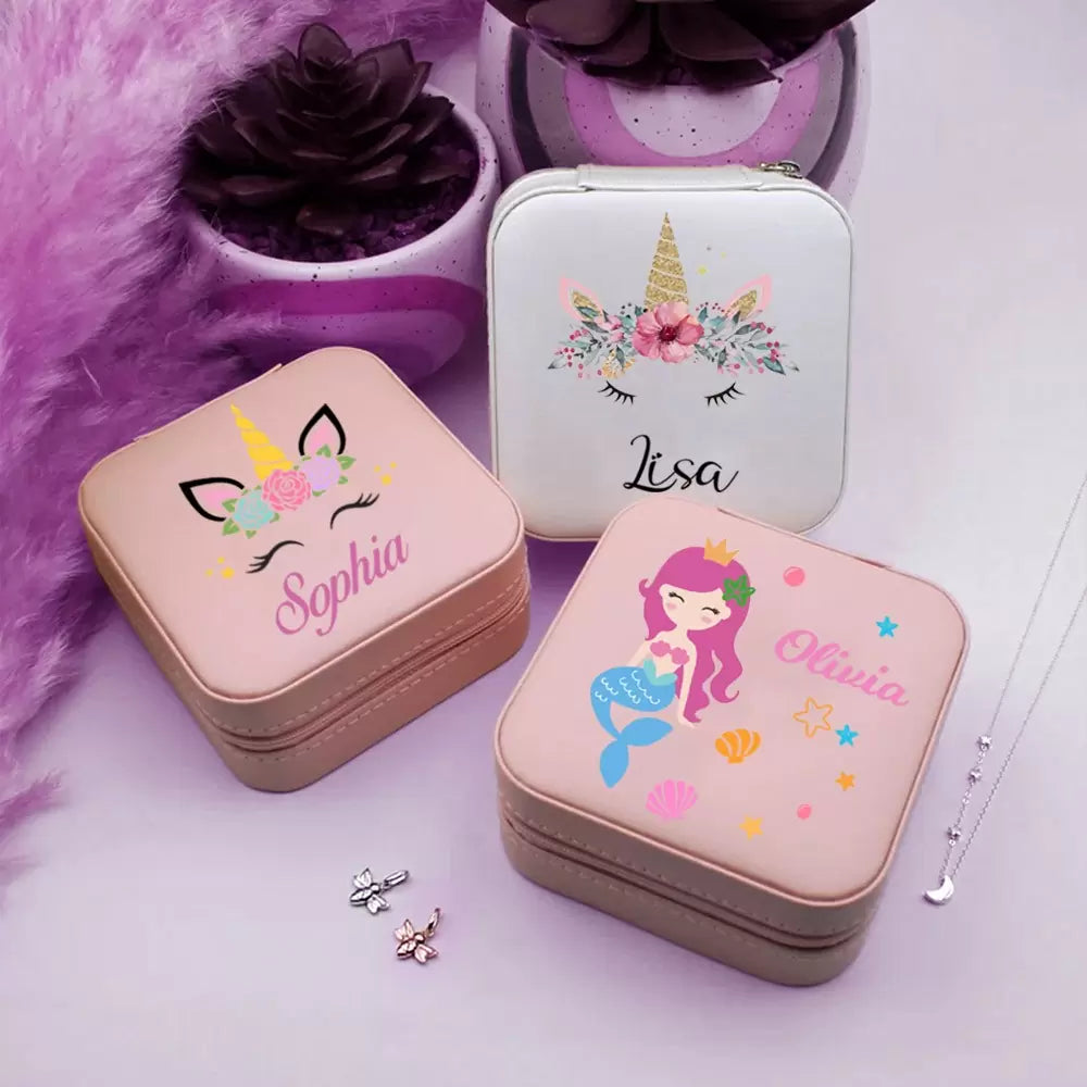 This jewellery box is a custom jewellery box with elements like unicorns and mermaids that every little girl would love. It's a lovely gift for children or flower girls. personalised with the name of your choice.