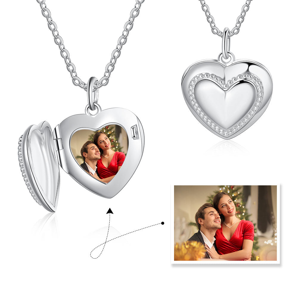 Sterling Silver Personalised Photo Heart Locket Necklace