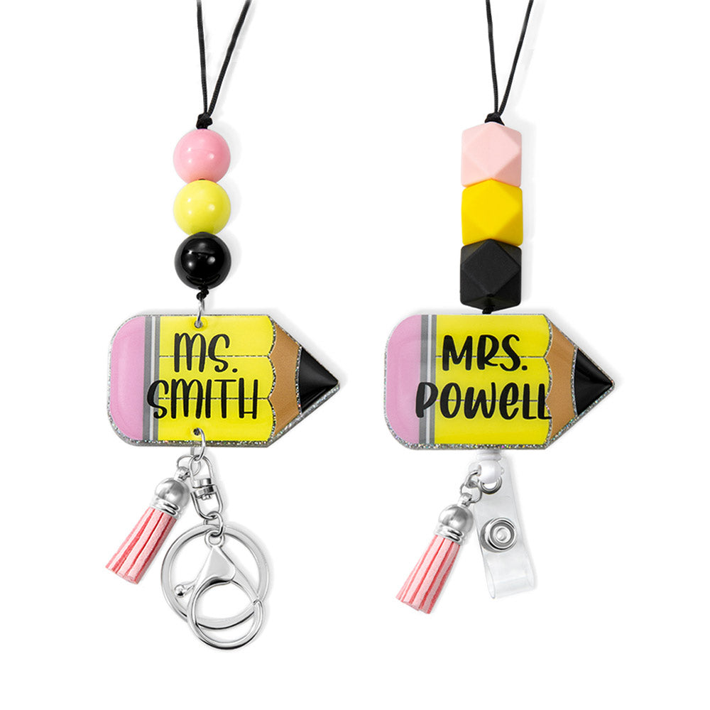 Teachers Personalised Acrylic Pencil Keychain or Badge Reel Lanyard